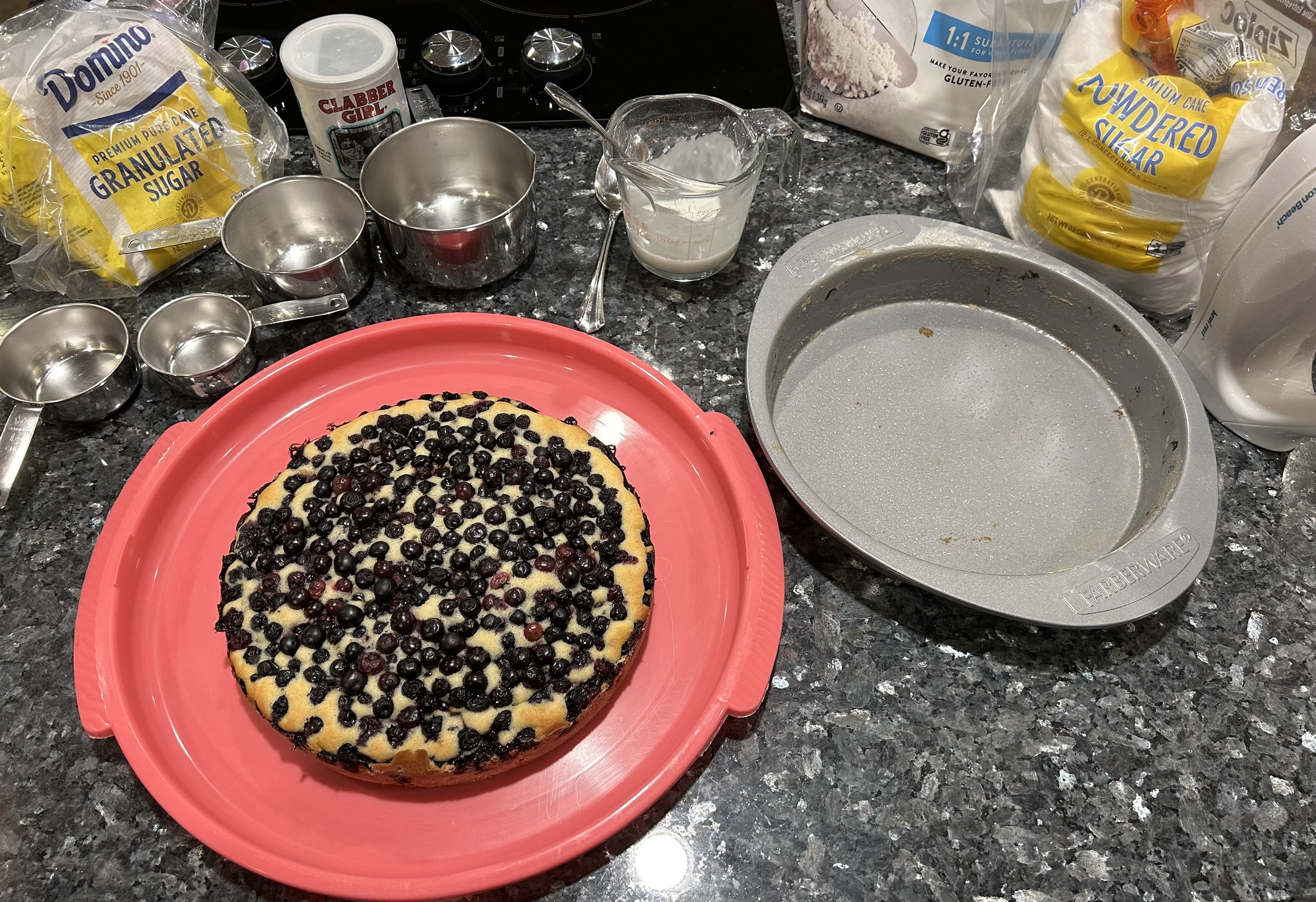 Bake until cake pulls away from sides of pan - about 35-45 minutes.