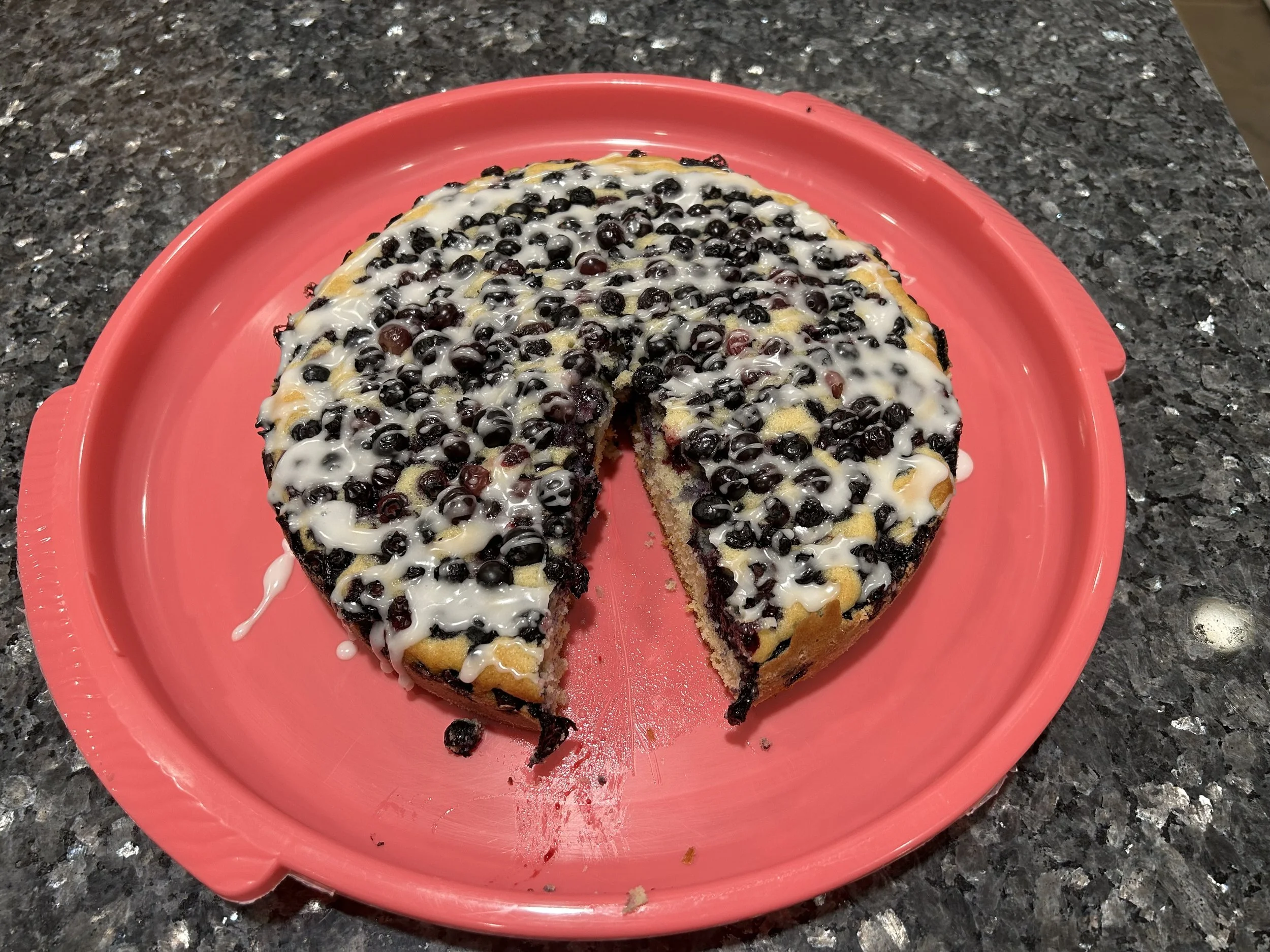 Remove cake and cool for 10 minutes, remove from pan and drizzle with powdered sugar and milk mixture.